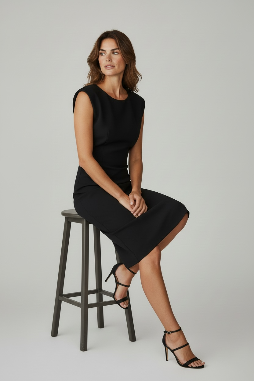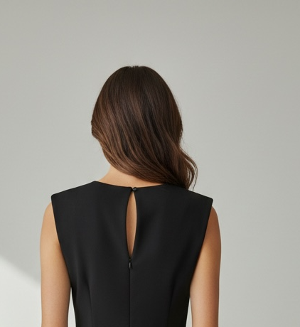 - See must kleit on loodud naisele, kes hindab lihtsust, kvaliteeti ja enesekindlat välimust. Puhas ja minimalistlik lõige rõhutab kaunilt figuuri, samas jäädes mugavaks ja loomulikuks kogu päeva vältel.